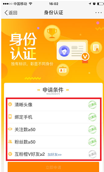 3、个人身份认证的申请条件有以下五个,需要同时满足,
