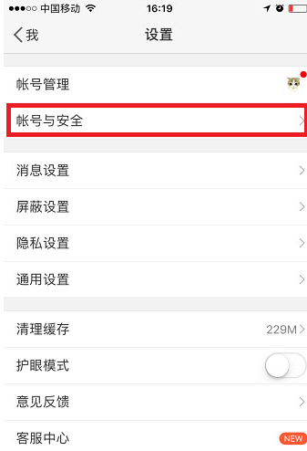 【绑定手机】是实名认证必须的一部,在【我】的页面中,点击右上角的【设置】按钮,找到【账号与安全】。