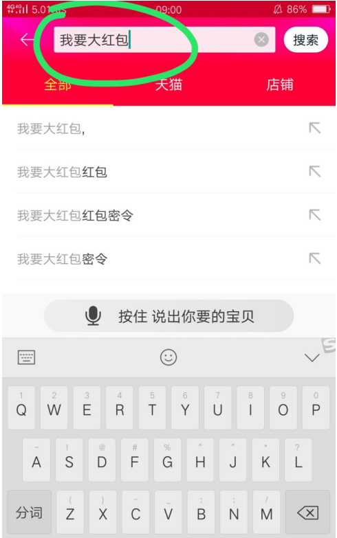 2、在上方的搜索栏输入“我要大红包”,然后点击搜索,