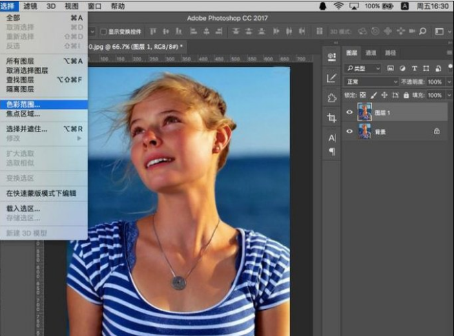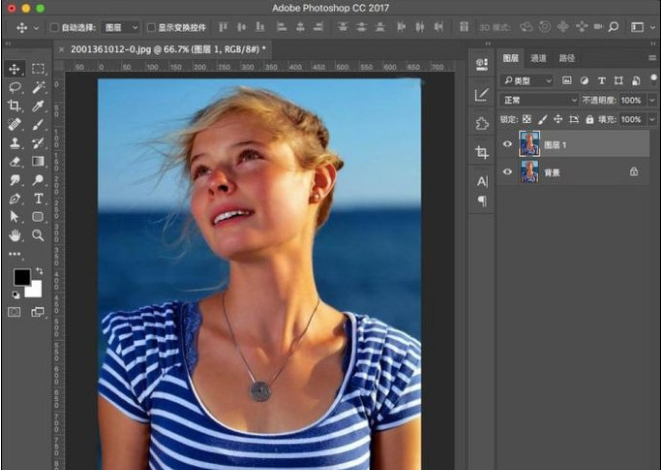 1、进入PS界面,打开我们需要处理的图片,如下图,我们可以看到模特的脸上局部曝光过度。