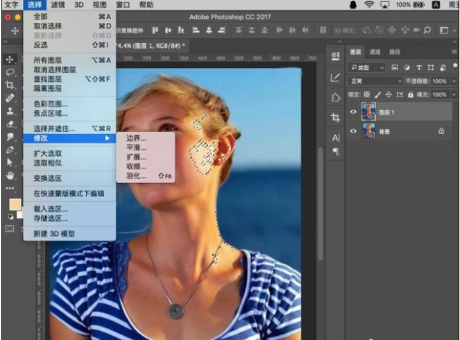5、点选完成后会出现选取,这个部分就是我们选出来的曝光过度的范围,如果有的部分不想进行修复的话,用套索或者选框来取消就行了。