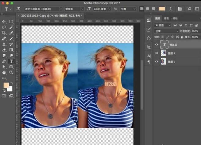 10、加温滤镜处理后即可完成处理,在下面对比图中我们即可看到修改后的脸部看起来就要柔和许多了,你还可以通过曲线和色阶来调整下对比。