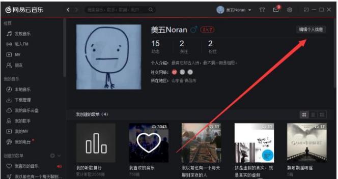3、接着会进入网易云个人中心,也就是我们的个人资料,我们点击修改资料(如图所示)。