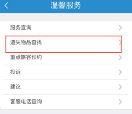 2、进入该软件主页,点击“温馨服务”按钮,接着进入“遗失物品查找”。