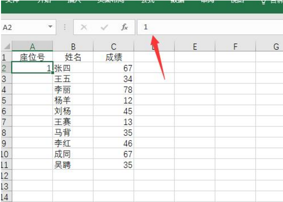 4、重新往下拖排序。想让顺序正确的话,那么需要重新选择序号那行,接着往下拖,这时候就能直接看到有新的序号生成。