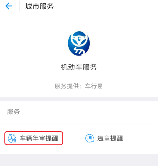 3、在打开的页面中可以看到,此项服务是由第三方提供的,共列了两项服务,点击其中的“车辆年审提醒”,