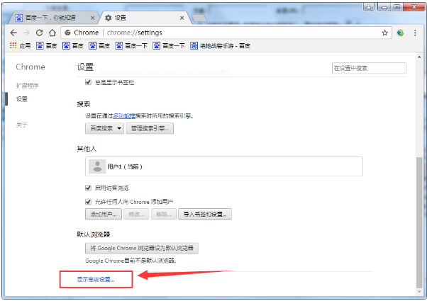 2、接着滑动到设置界面的最底端,找到“显示高级设置”并打开;