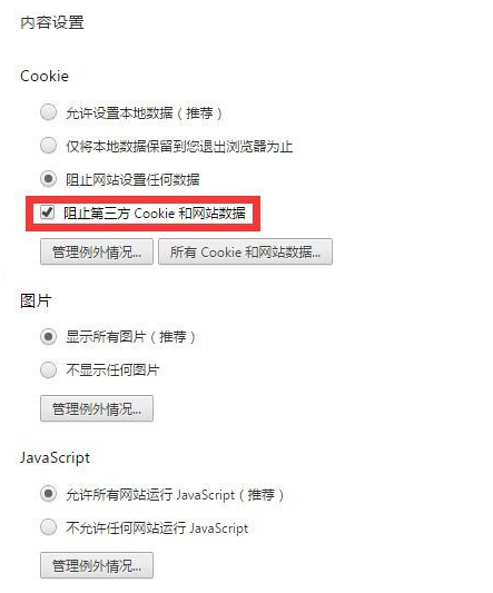 3、之后在高级设置中找到“隐私设置”里的“内容设置”如下图: