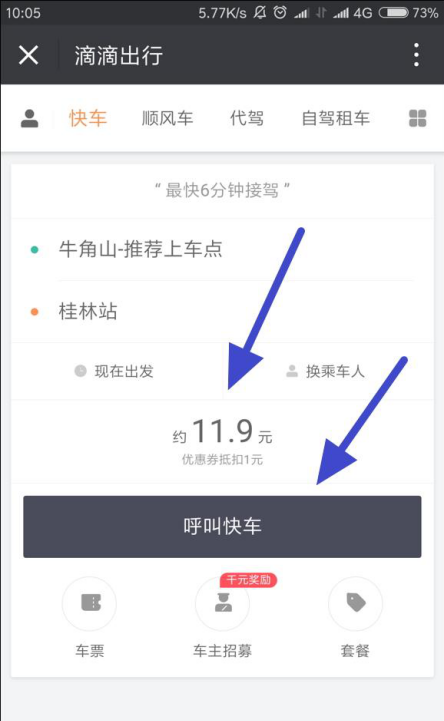 7、接着我们可以看到大约需要多少钱,然后点击下方的呼叫快车。