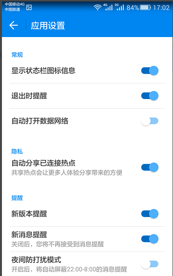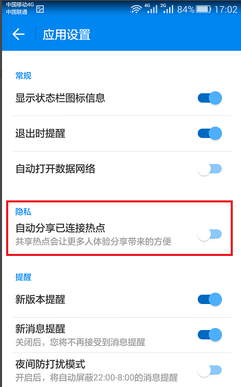 5、开启“自动我来教你已连接热点”,也可以设置应用程序其它设置,如下图所示: