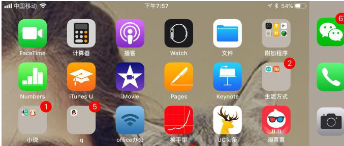 1、首先我们将屏幕往上滑,进入副屏,如下图所示。