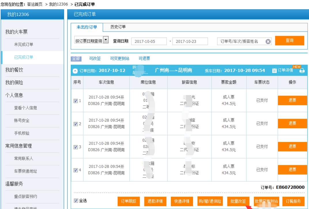 12306平台如何改签火车票?