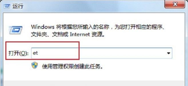 4、在运行输入框里面输入“et”,点击确定,