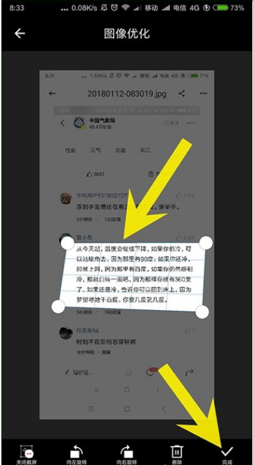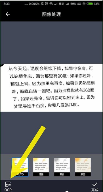 转换之前,如果你是用手机拍摄的图片,请尽量让文字保持在水平线上,若是图片背景太暗,建议调整图片的亮度和对比度、突出文字。