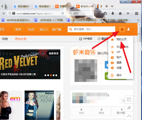 进入网页版虾米音乐,然后点击我的主页,