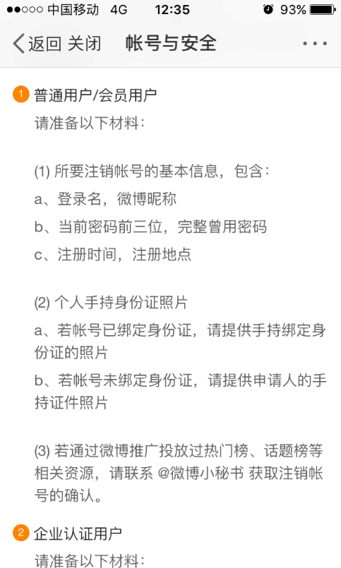 四、前面所有条件都满足后,就能进入下图一所示的位置(准备好图示所需的材料)。进入下一步,就来到如下图二所示的位置,现在只要通过电子邮箱(邮箱不要用准备注销账号的新浪邮箱)发送其所需材料就可以了(邮件主题就写“注销新浪账号”吧)。接下来就等着新浪公司的邮件回复。