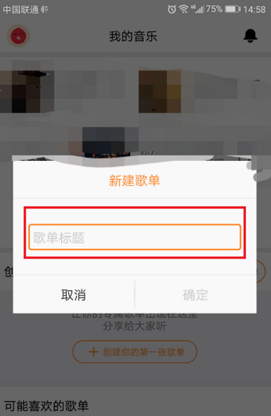 2、弹出框,输入歌单的名称,点击确定,如下图所示: