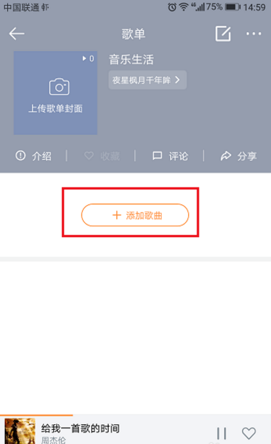 4、进入歌单,选择添加歌曲,如下图所示: