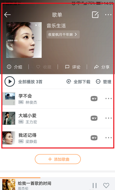 6、我们可以看到歌单已经添加了歌曲,这样歌单就完整的创建了,如下图所示: