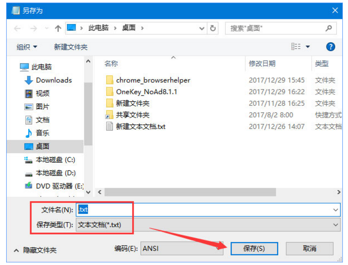 3、然后将文件名修改为.txt,接着点击保存,如下图所示。