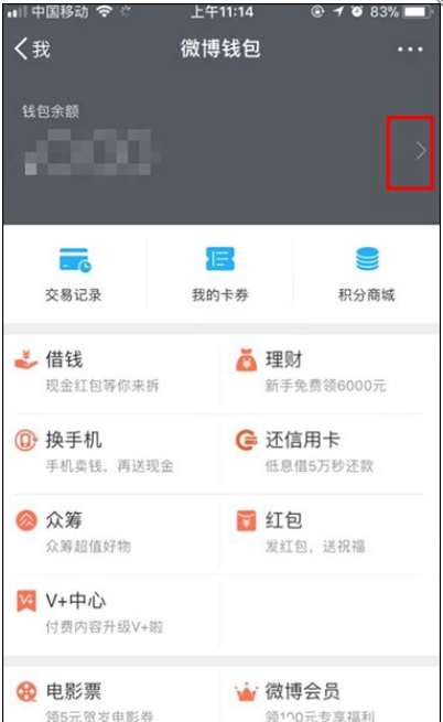 2、进入到微博钱包界面,点击“钱包余额”进入;
