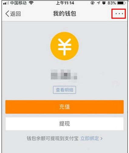 3、进入到我的钱包界面,点击右上角三点;