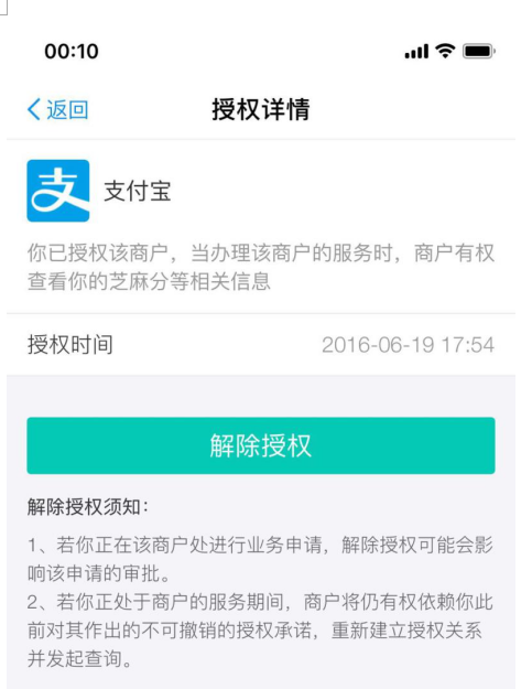 需要注意的是取消授权后,支付宝再次需要使用您的芝麻分等信息时,需要您再次授权。
