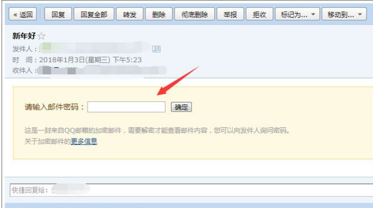 5、通过上述方法我们就成功发送了加密的QQ邮件,接下来我们看看收件方打开邮件的效果: