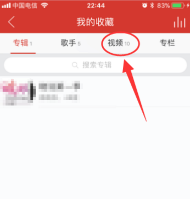 3、在“我的收藏”页面,可以看到自己收藏的专辑、歌手、视频、专栏。点击“视频”就可以看到自己收藏的视频和MV了。