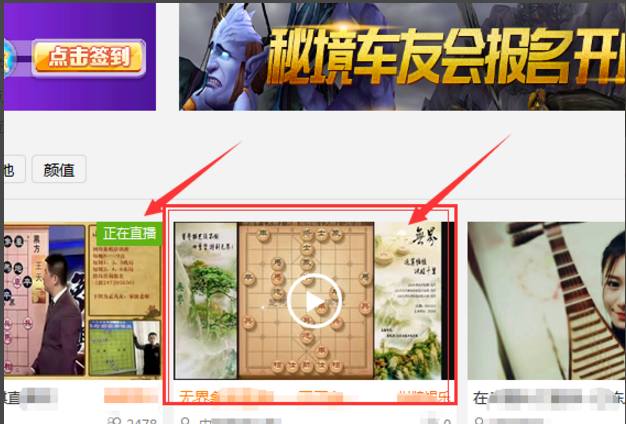 3、选择需要查看回放的主播。如果主播正在直播视频,可以直接点击查看,如果主播没有在线,可以点进去查看以前直播的视屏。