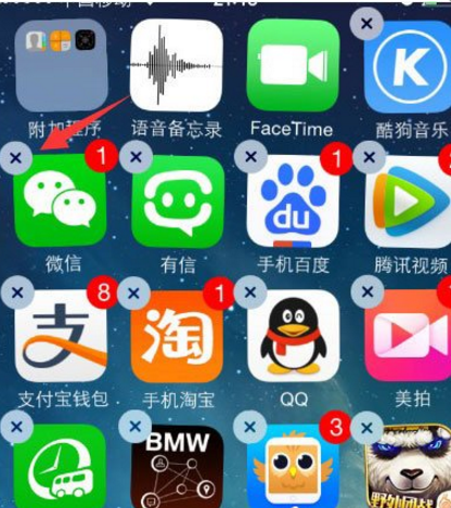 3、长按图标后,这时桌面图标出现抖动,并在图标上方出现删除图标。