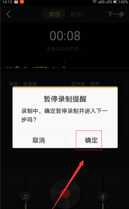 4、录制过程中,我们可以点击右上角的下一步;会弹出一个提示框,我们直接点击“确定”。