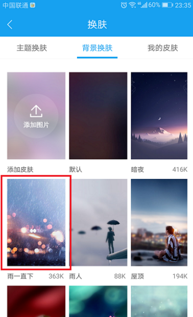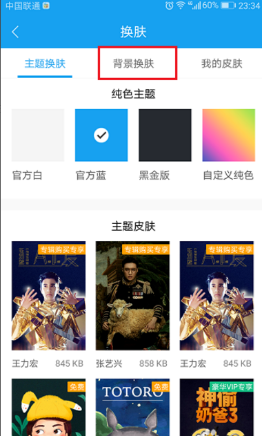 3、进去换肤界面之后,我们看到可以进行主题和背景换肤,如下图所示:
