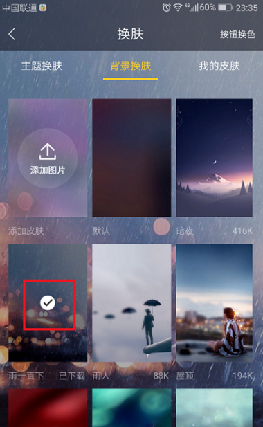 4、点击背景换肤,选择喜欢的背景,进行点击下载,如下图所示: