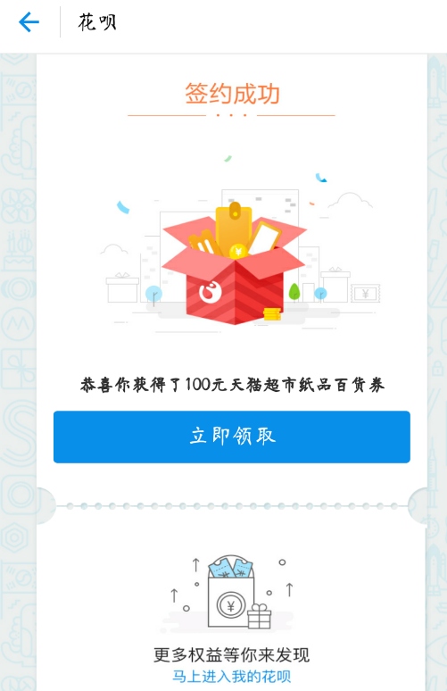 3、输入密码后,系统会提示你签约成功,这时候你的花呗就开通了。