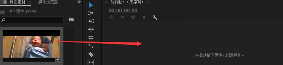 2、把导入的素材拖动一下,拖动到时间轴上面。