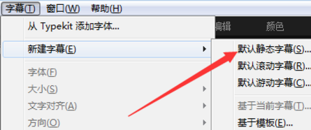 3、然后点击最上方菜单栏,选择字幕——新建字幕,创建一个静态字幕。