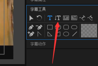4、然后我们需要点开字幕工具,选择我箭头所指的这个标志,这个标志就是创建垂直字幕的。