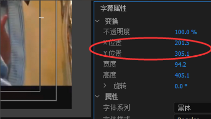 6、我们也可以调节字幕属性里面的x和y,来改变字幕的位置。x是横向移动,y是竖向移动。