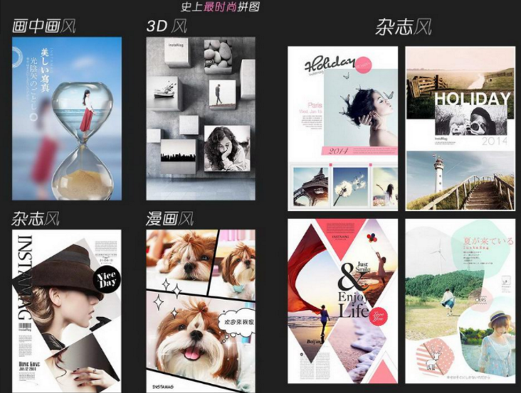 故事拼图:海量丰富的时尚拼图模板,独家智能水印,拼出你的故事心情