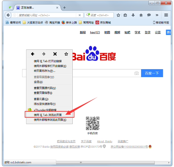 3、之后在我们想要改变成兼容模式的页面点击鼠标右键,然后选择“使用IE Tab浏览此页面”;