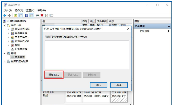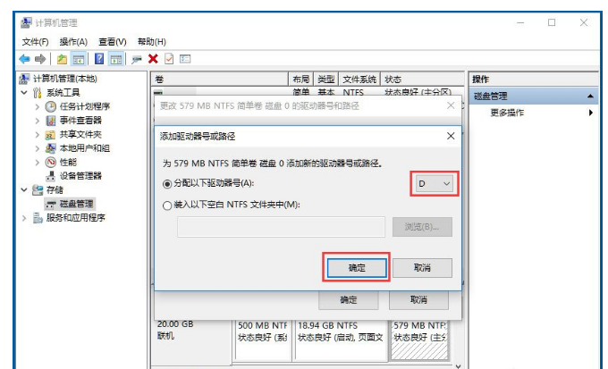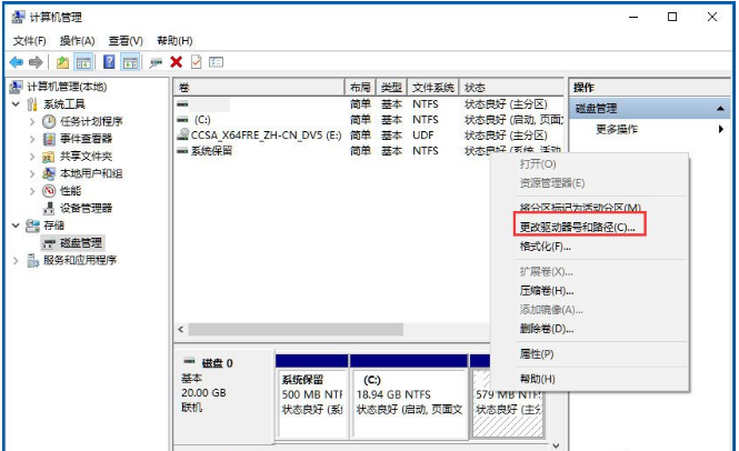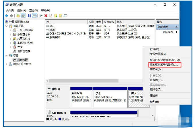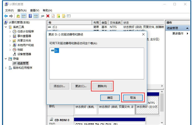 4、以D盘为例,右键D盘弹出菜单,选更改驱动器号和路径,点击删除,确定;