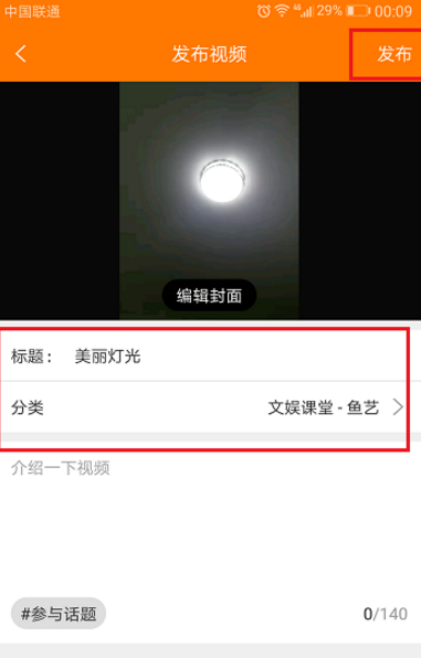 5、进去视频的发布界面,选择封面,标题和所属分类,点击发布,如下图所示: