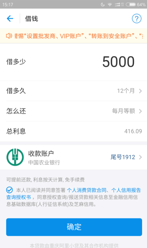 注意:借款需要利息,利息是按天计算的,能尽快还就尽早还清哦。