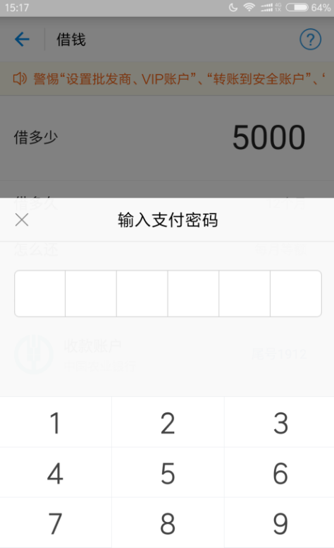 2、进入蚂蚁借呗页面,点击右下角“去借钱”,输入借钱金额、时间,填好后点击确认,并输入密码。等一会,钱就会打入指定账户中。