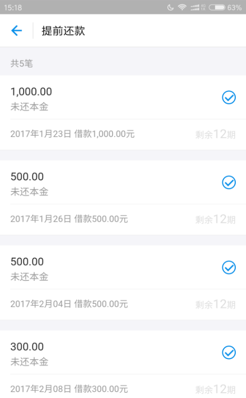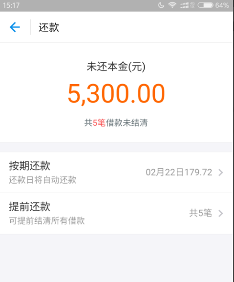 3、点击蚂蚁借呗左下角“去还钱”,就会显示未还本金的金额。用户可选择“提前还款”或者“按期还款”两种方式。