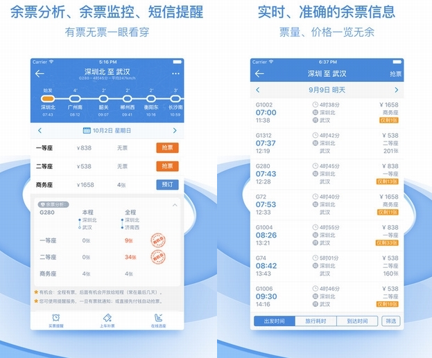 【智能查询】分析附近站点的余票,大大提高买到票的几率;