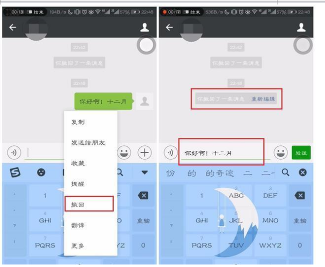 值得注意的是,撤回可编辑也是有时间限制的——5分钟哦!5分钟之后再点“重新编辑”,便没有文字可让你重新编辑了!