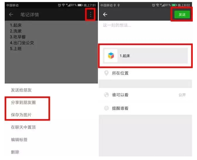 4、微信收藏笔记可以直接保存为图片或发送到朋友圈