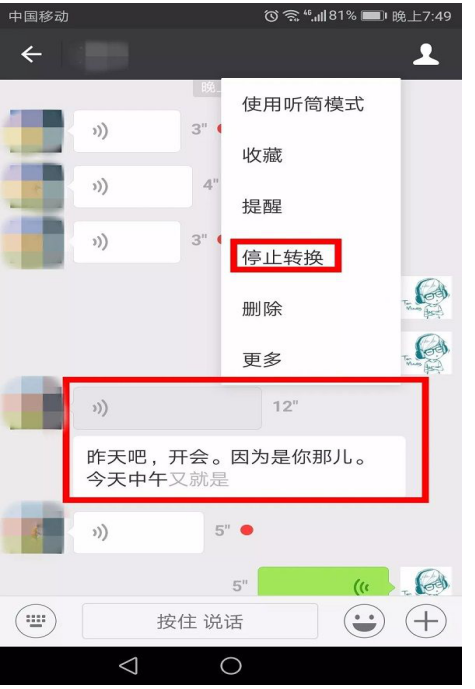 在转换过程中,用户可以长按语音选择“停止转换”